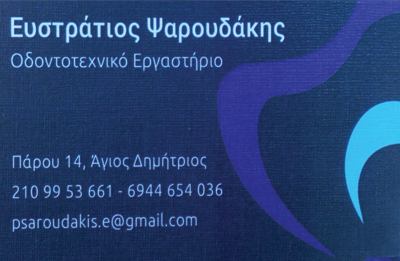 Οδοντοτεχνίτες και Οδοντοτεχνικά ΕργαστήριαΥγείαΠάρου 14, Άγιος ΔημήτριοςΑΓΙΟΣ ΔΗΜΗΤΡΙΟΣ ΑΤΤΙΚΗΣΑΤΤΙΚΗΣΤΕΡΕΑ ΕΛΛΑΔΑ21099536616944654036Σύγχρονο Οδοντοτεχνικό Εργαστήριο (Εμφυτεύματα - Προσθετική) Μοιραστείτε τις πληροφορίες της επιχείρησής στα κοινωνικά δίκτυα:
